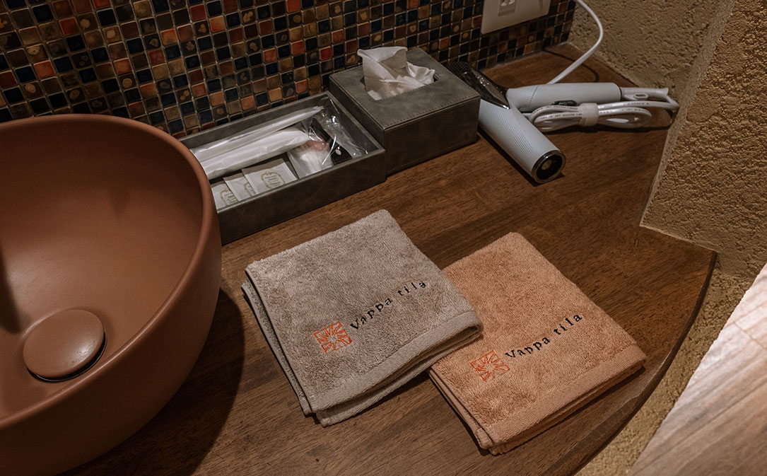 フェイスタオル・バスタオルはUENO TOWEL「泉州美人」を使用。高い吸収性と優れた風合いをご堪能ください。
